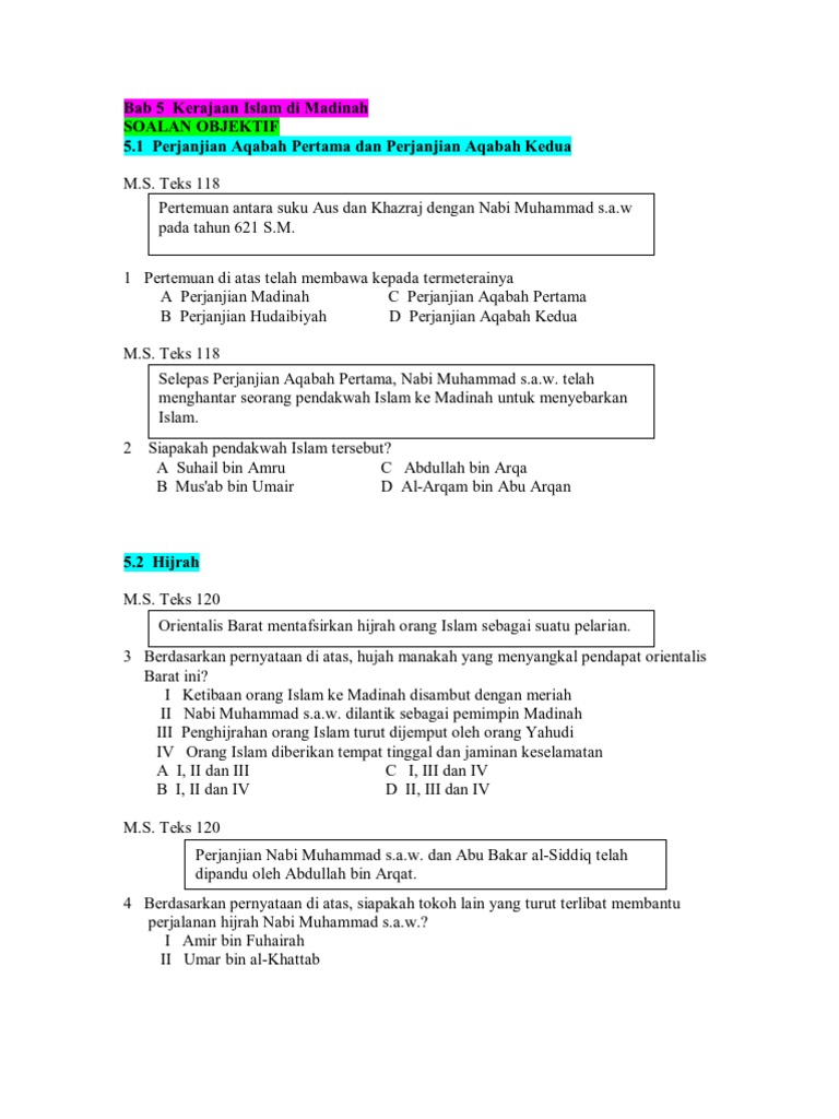 Skema Jawapan Kerajaan Islam Di Madinah Dan Contoh Soalan